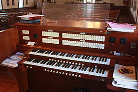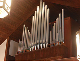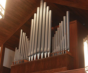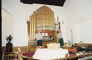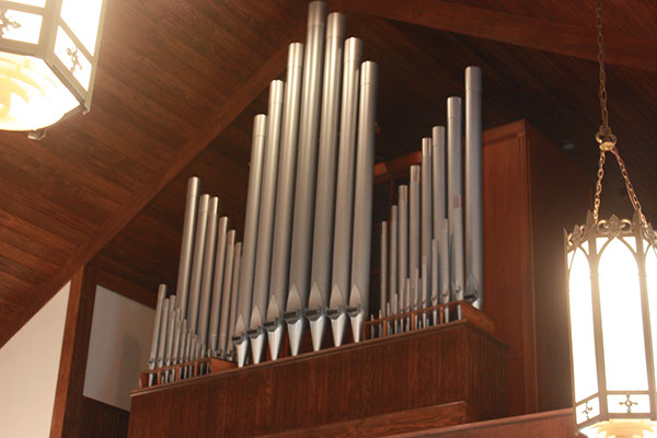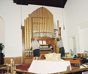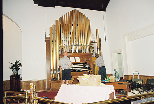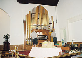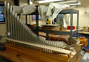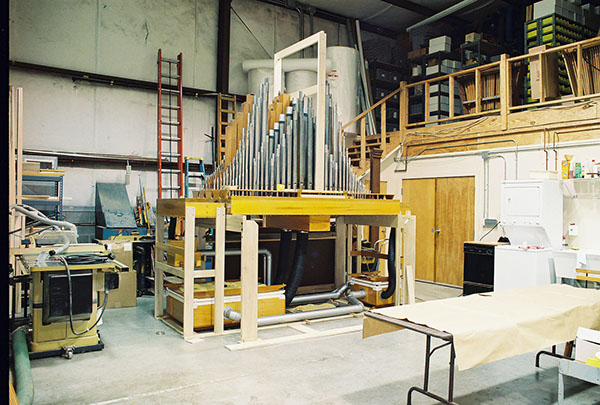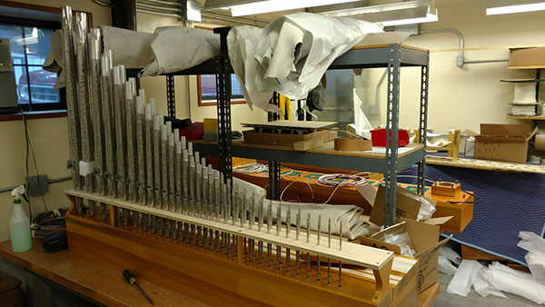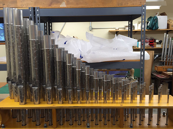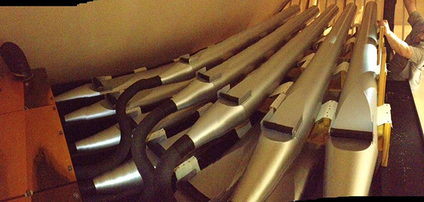 16' Trumpet and Harmonic Flute installed in the chamber.